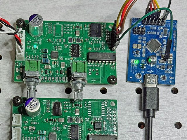右側が今回作成のADコンバータ基板。すっきりした音だ。