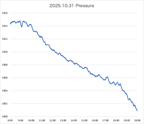 縦の目盛間隔を10/28と合わせたので縦方向が長くなっているが,それだけ急に気圧が落ち込んだという話。