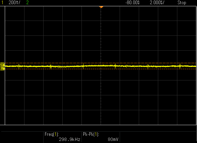 確かに300kHzで発振している。ヒゲは50MHzくらい。