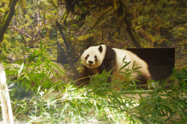 ガラスが反射して中のパンダはほぼ見えない角度なのだが,あってよかったC-PLフィルタ。