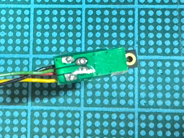 リード線の半田付けランドは紫外線硬化エポキシ樹脂で絶縁保護。こういう時は便利だ。