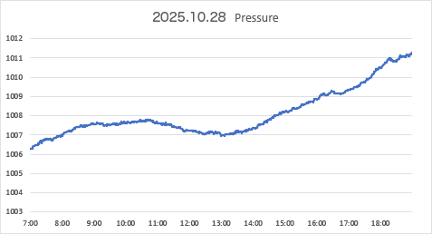 縦の目盛間隔を10/28と合わせたので縦方向が長くなっているが,それだけ急に気圧が落ち込んだという話。