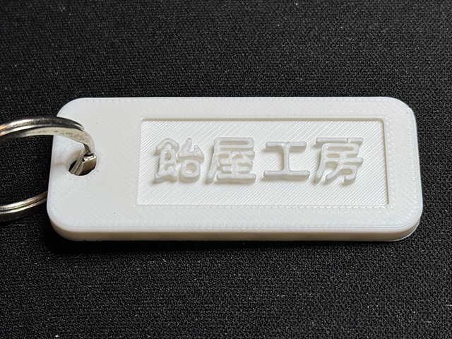 3Dプリンタつづき。3Dプリンタは3D CADが無いとオリジナルのデータを印刷できないので,3D CADのお勉強から。昔は使い物にならなかったが,ここ10年くらいで確実に進歩したという噂のFreeCADに手を出してみる。YouTubeにあったキーホルダーをつくる30分くらいの入門動画を見ながらキーホルダーのデータを作ってみる。この動画では,スケッチャーと呼ばれるワークベンチ(いわゆるツールのことをFreeCADではワークベンチと呼ぶ)を使った作成方法を紹介している。なるほど,操作性に多少の癖はあるが,基本は2D CADと同じだ。サクサクと作成できてしまった。せっかくキーホルダーなのだから飴屋工房の文字も入れてみる。文字を足すのはFreeCAD内の別のワークベンチが必要なので少し面倒くさいが,とりあえず入れることはできた。フォントの種類はディスク上のフォントファイルを選択して指定するという少しだけ残念な仕様ではあるが,3Dの場合,そもそも文字をそんなに使わないのでこれはこれで良いかもしれない。あと,使えるフォント形式に制限があり,Macのヒラギノはそのままでは使えない。それはともかく,出来上がった3Dデータを一昨日のBambuStudioに読ませて,プリンタの機種,材質,ノズル径,積層厚,ビルドプレート(プリントを出力する台)の種類と温度,その他諸々を指定すると積層面としてスライスしたデータを出力できる。これをmicroSD経由でプリンタに読ませて印刷。まぁ,初めてにしては上出来ということで。