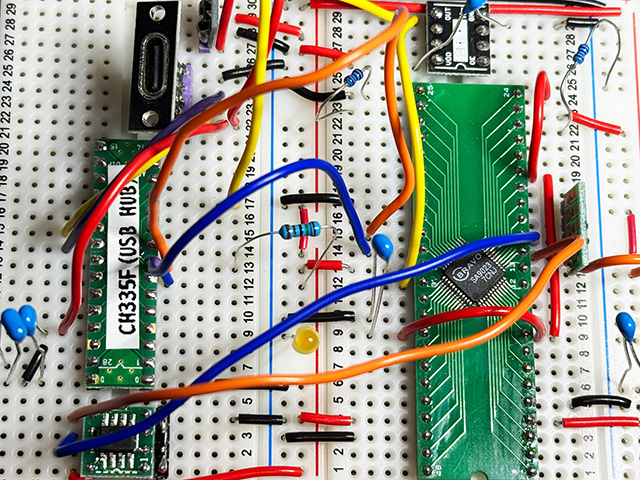 秋月扱いのCH335Fをブレッドボードに追加。Macで認識確認できたので,この後,PCM5102Aを追加して動作確認してみた。