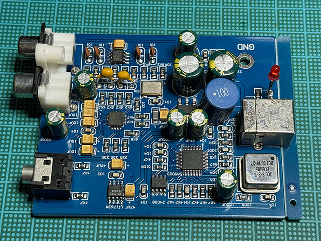アリエクに大量に置いてあるSA9023+ES9018K2Mの基板が届いた。大概のストアでES9018K2MではなくES9028K2Mと書かれて売られているが,元ネタを卸しているベンダがES9028K2Mとして売っていると予想。売り手にそんな細かい話をしても分かる人達ではないのだろうな。SA9023はA付きのSA9023Aだったが,A無しとどう違うのかはわからん。この基板,実用として使う訳ではなく,価格が2000円ちょっとなので部品取り用に調達。 動作確認で一聴したところ結構よくできている。これはこれで十分実用になりそうだ。ES9018K2Mのアナログ電源はローノイズのLT1763を奢っている。秋月で買うとこれだけで450円だ(ただし本物かどうかの保証は無し)。ES9018K2Mの出力を受ける差動アンプはAD823だ。コイツは3〜36Vの単電源で動作するスグレモノ。USBの5Vで動かすならいい選択だ。問題はコストで,もし本物だったら1個単位で買うと単価は千円以上になる。ローパスフィルタも兼ねているので,ハイスピードな音だが目立った棘もなくシルキーな感触だ。改造するなら出力に入っているパスコンを中華からもう少しマトモなモノにすることくらいか。中華電解コン以外は結構マトモな部品が入っている。なんと大量のタンタルコンを搭載。これがいい味出してるような音なのだ。燃えてショートさえしなければいい部品。でも国内設計品だとショートが怖くてセラコンを使う場所だ。せめてこれだけタンタルコン使うなら,USB電源のところに過電流保護を入れて欲しいところだが,一切入っていないところもさすが中華。それはおいといて,改造ネタの出力のパスコンは別にオーディオ用でなくても,電圧が低いのでマザーボード用の奴や,高分子コンデンサで遊んでみると楽しいかもしれない。