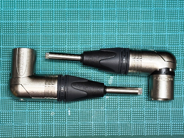 ZOOM F3用のMEMS無指向性マイクができあがった。元ネタはいつもの通りShinさんのPA工作室。先月の奴はマイクバーで使う分には良いが,ZOOM F3にL字延長をつけて接続すると邪魔なのだ。というか邪魔だった。そこで,NEUTRIKのNC3MRXを使ってMEMSマイクを仕込むという構成。ところがこのNC3RX,ケーブル側は余裕があるが,コネクタ側のスペースがほとんどない。ケーブル側に基板を入れても作れないことはないだろうが,蓋の取り付け時にクルクル回す仕様なので,そこで配線が千切れてしまいそうだ。やはりShinさんのオリジナル通りコネクタ側に基板を置くとする。となると残念ながらSMDトランスはサイズ的に入らない。そこは諦めてオリジナル通りFETで。ペア取りが面倒なのでデュアルFETの2SK2145GRを使用。回路を見る限りGRでもBLでもどちらもあまり変わりそうもない筈なのでGRで。元回路のVIMA MKS2と16V電解は16V耐圧のPMLCAPに。これでかなり小さくなった。NC3MRXのコネクタ部のスペースに筐体無加工で入る(XLR側のピンを少し短くする必要はあるが)。