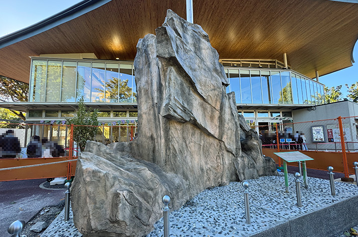 サル山の残骸モニュメント。まだ公開前なので柵で覆われている。