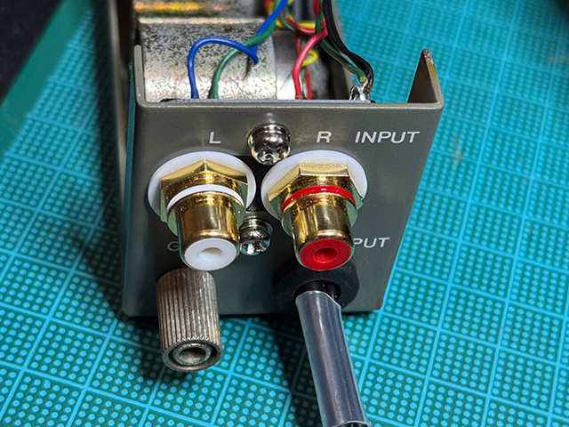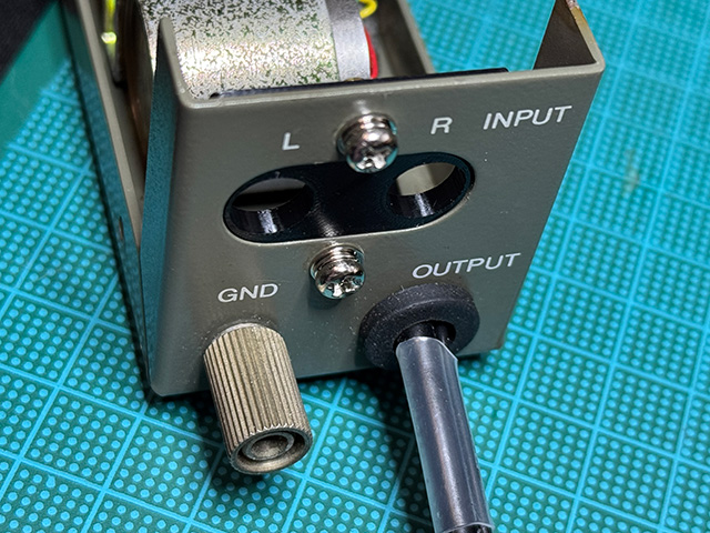 今年の5月くらいにレコードプレーヤーのMCカートリッジ用トランス DENON AU-310 のジャンクを復活させたネタを書いた。今日はその続き。背面の入力用RCAコネクタが昭和40年代風味の安物だったので5月の時点でプラ板を加工してトモカのC-60に交換したのだが,やはり金属ケースとの隙間のお陰かRCAコネクタが緩んでしまっていた。そこで先月導入した3Dプリンタを使ってコネクタの台座を3Dプリントしてみようと思った次第。これが良い感じにAU-310にハマる。ネジ留めはナット穴を定義するのが面倒だったので,少し大きめの穴を定義してインサートナット(木工用の鬼目ナットのようなもの)を挿入してみた。コイツは少しだけ圧入後,ハンダゴテを使って熱で押し込んでやればスッと装着できるのが有難い(もちろん,慣れも必要だが)。