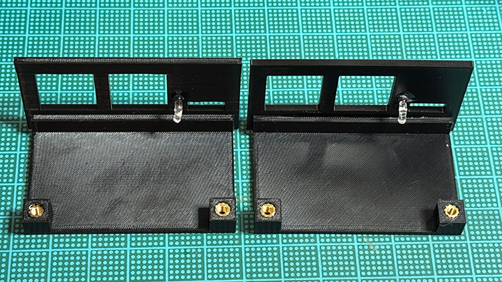 どちらもLED表示用に直角曲げしたアクリル棒を接着。