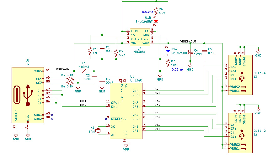 今回の回路図。CH334Rはアリエク,電流制限のMB3841はデジットのジャンク。