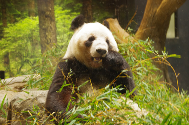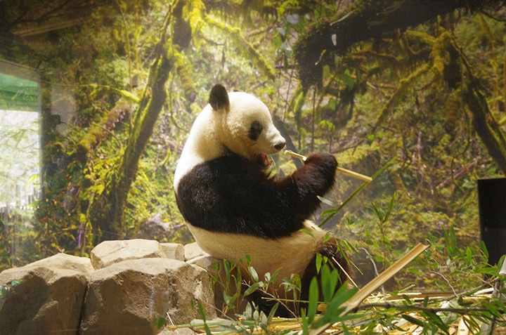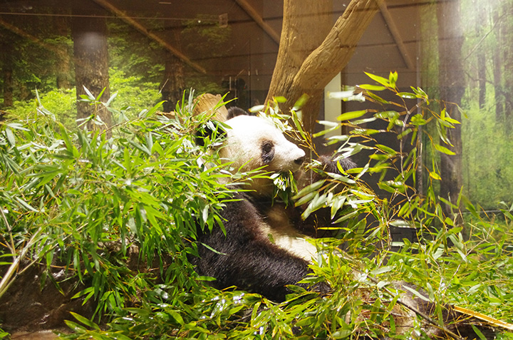 ガラスが反射して中のパンダはほぼ見えない角度なのだが,あってよかったC-PLフィルタ。