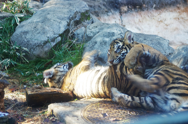 夏に生まれたスマトラトラの子供ベラニとレスタ
